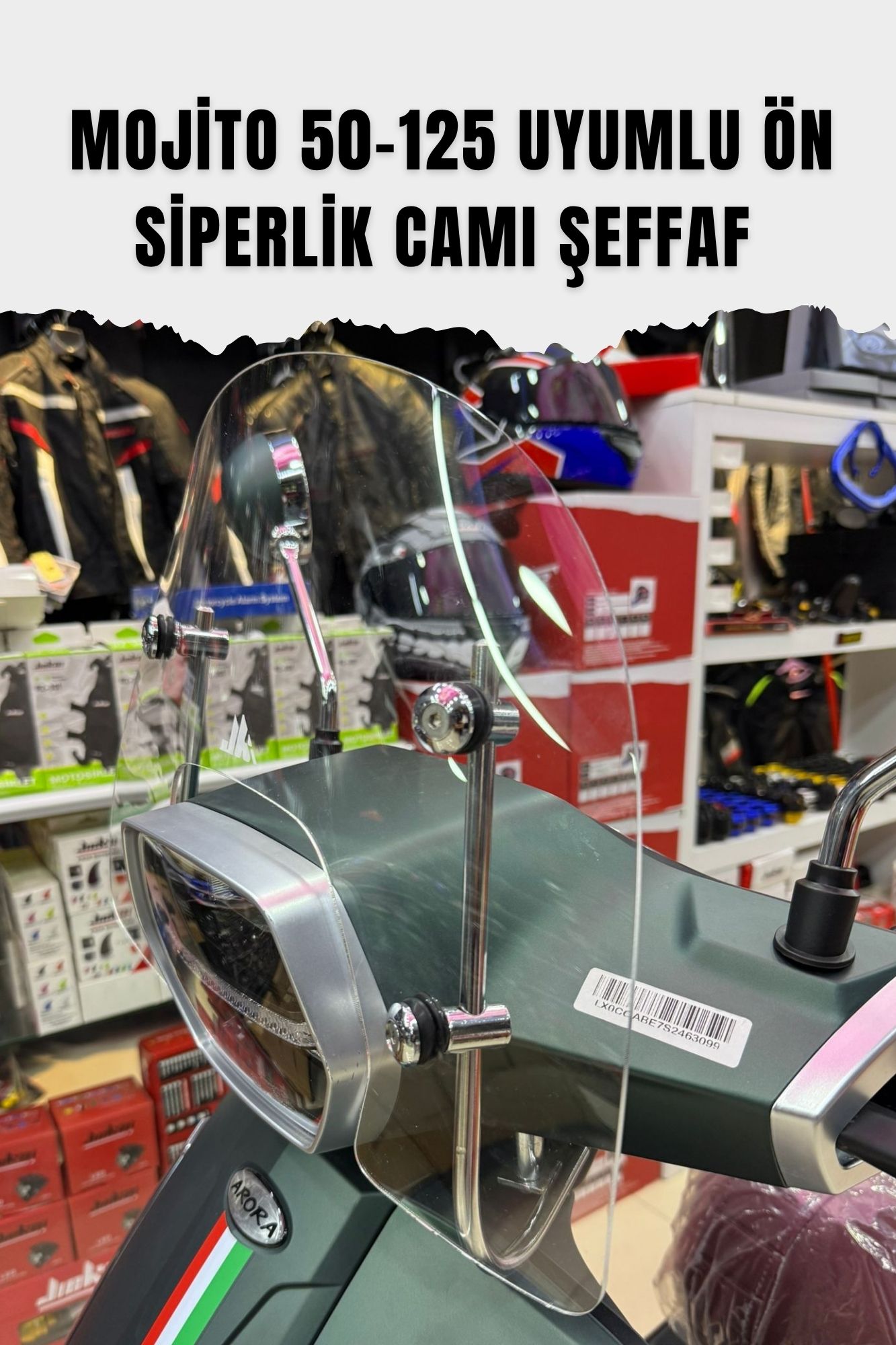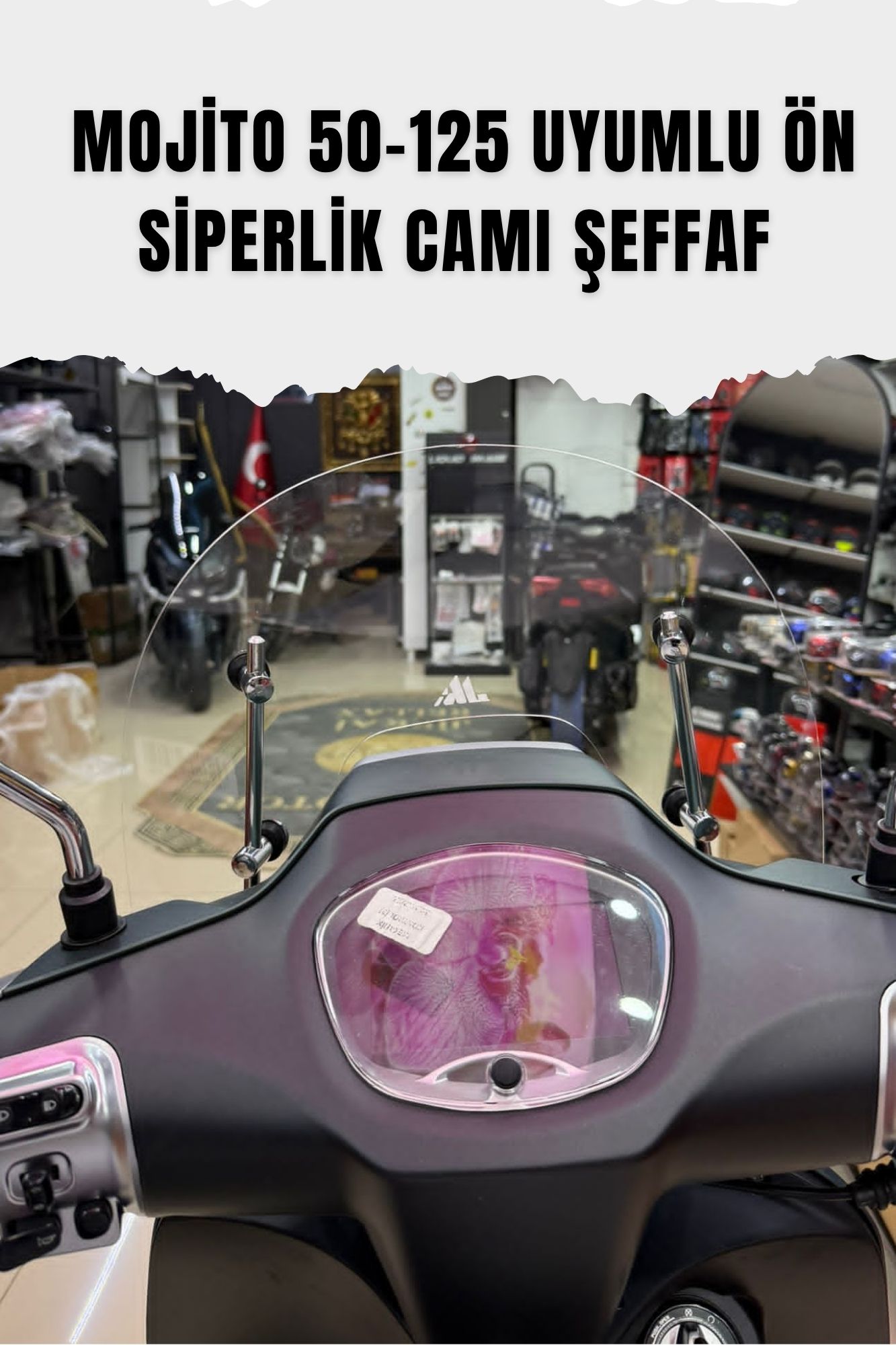 Scooter sürüşlerinde hem rüzgâr hem de dış etkenlerden korunmak isteyenler için ideal! JİEKAİ markasının Mojito 50-125 modelleriyle uyumlu şeffaf ön siperlik camı, şık tasarımıyla motosikletinizin görünümünü tamamlar, konforlu bir sürüş deneyimi sunar.
