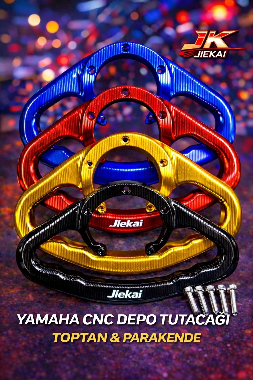 JIEKAI depo tutamaçları, genellikle motosiklet modellerine özel olarak üretilir ve kolay montaj imkanı sunar. Çoğu modelde, mevcut vidalama noktalarına uyum sağlayarak ekstra delik açma veya motosikletin yapısına zarar verme gereksinimi olmadan monte edilebilir. Kullanıcı dostu tasarımı sayesinde, basit el aletleriyle hızlı ve pratik bir şekilde kurulumu yapılabilir.