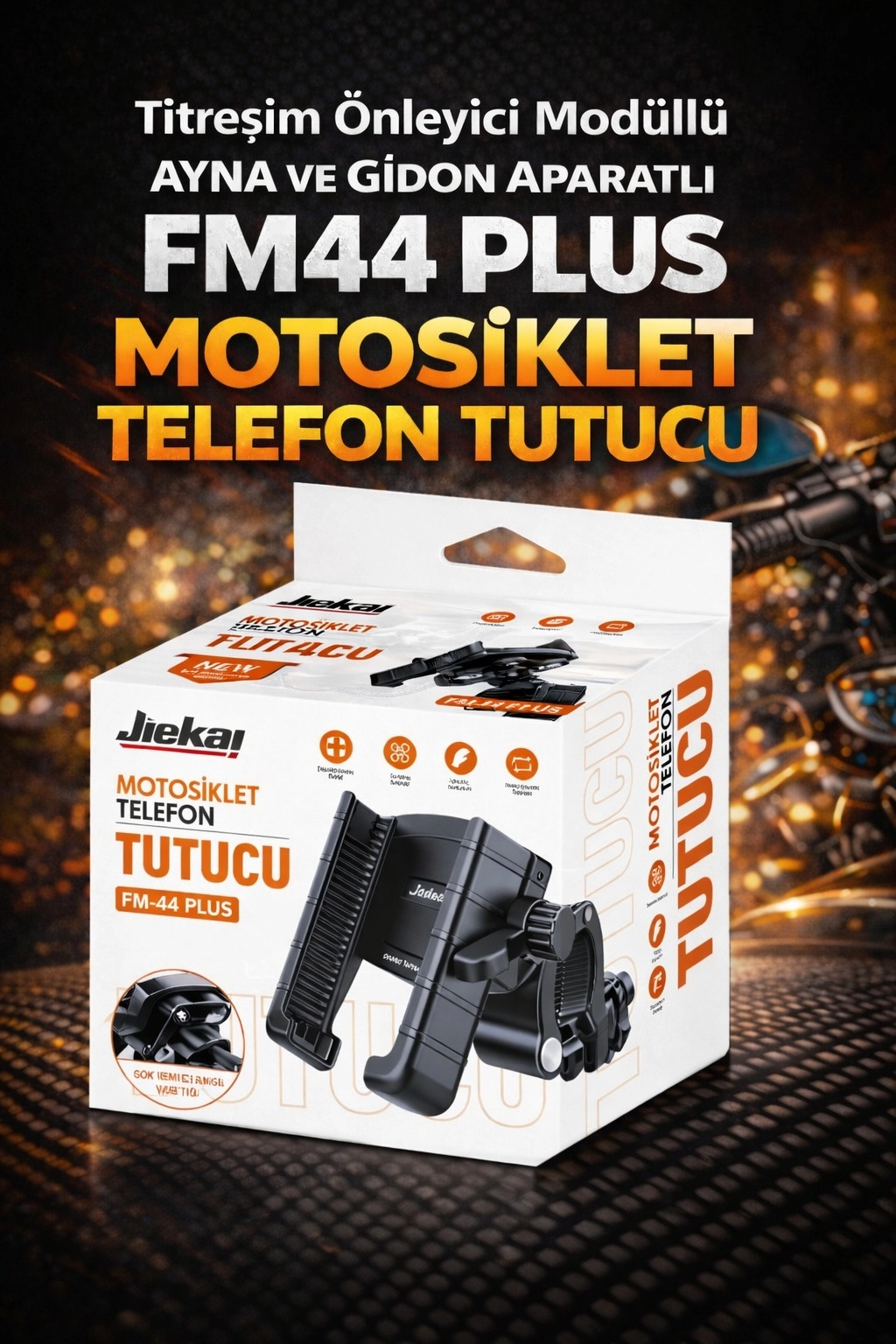 FM-44 PLUS TİTREŞİM MODÜLLÜ MOTOSİKLET TELEFON TUTUCU AYNA VE GİDON APARATLI UNIVERSAL TURUNCU