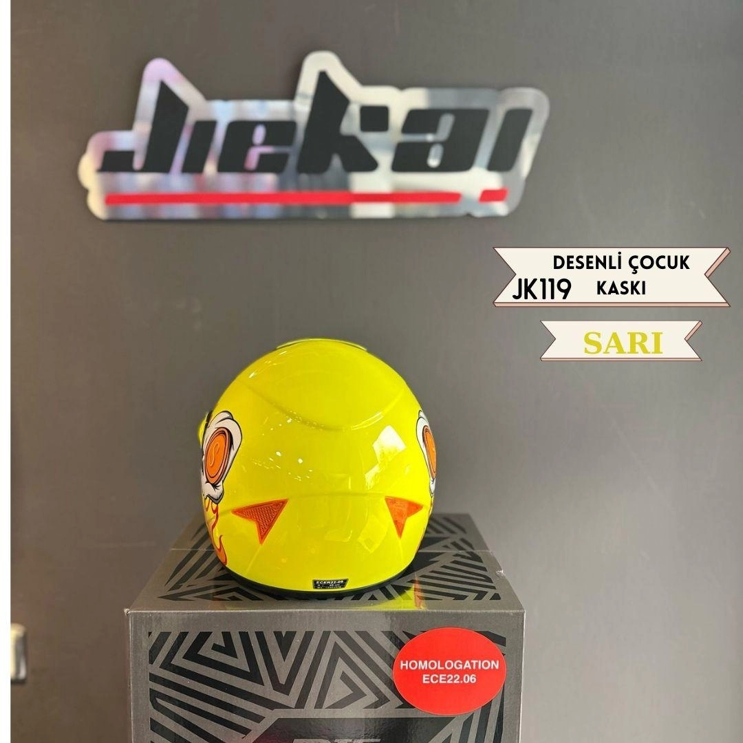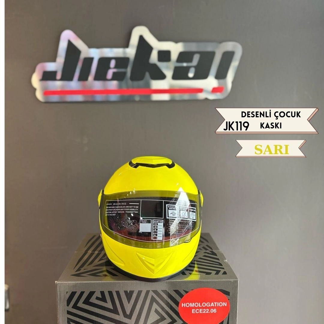 JİEKAİ JK119 Desenli Çocuk Kaskı Sarı Renk Full Face Kask