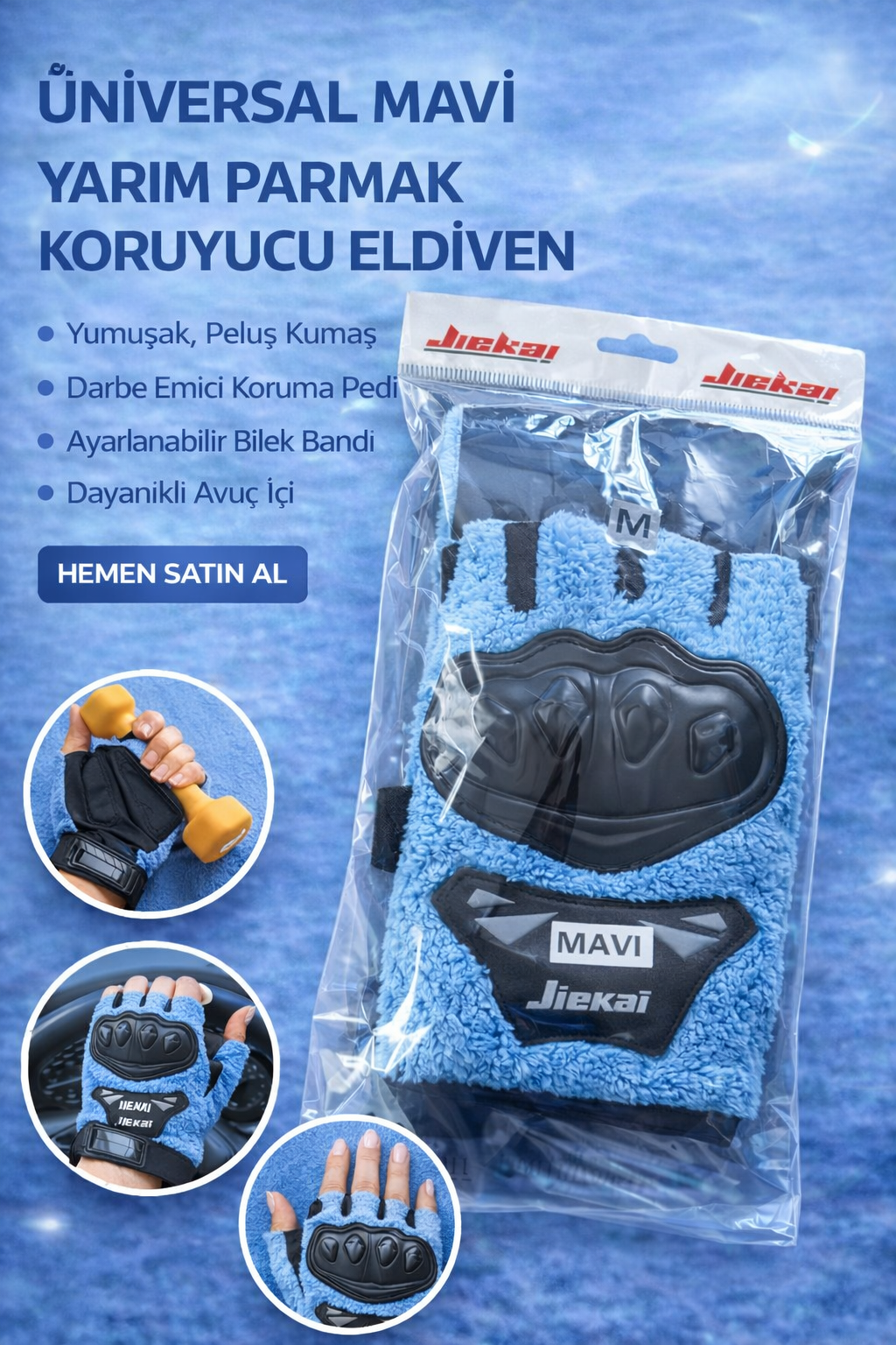 JK PELUŞLU YARIM ELDİVEN KORUMALI MAVİ RENK