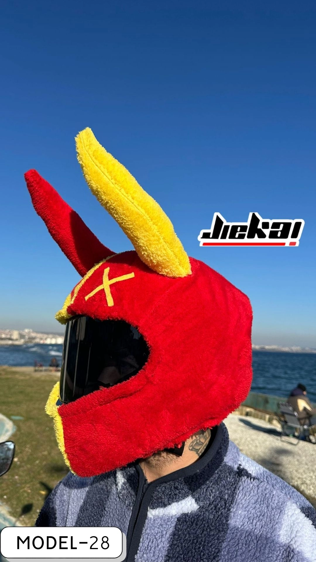 JİEKAİ’nin özel tasarımlarından Taraftar-2, enerjik sarı-kırmızı renk uyumuyla dikkat çeken, tarzını kaskına yansıtmak isteyen motosiklet tutkunları için hazırlandı. Canlı renkleriyle hem şehir içi hem uzun yol sürüşlerinde fark yaratır.