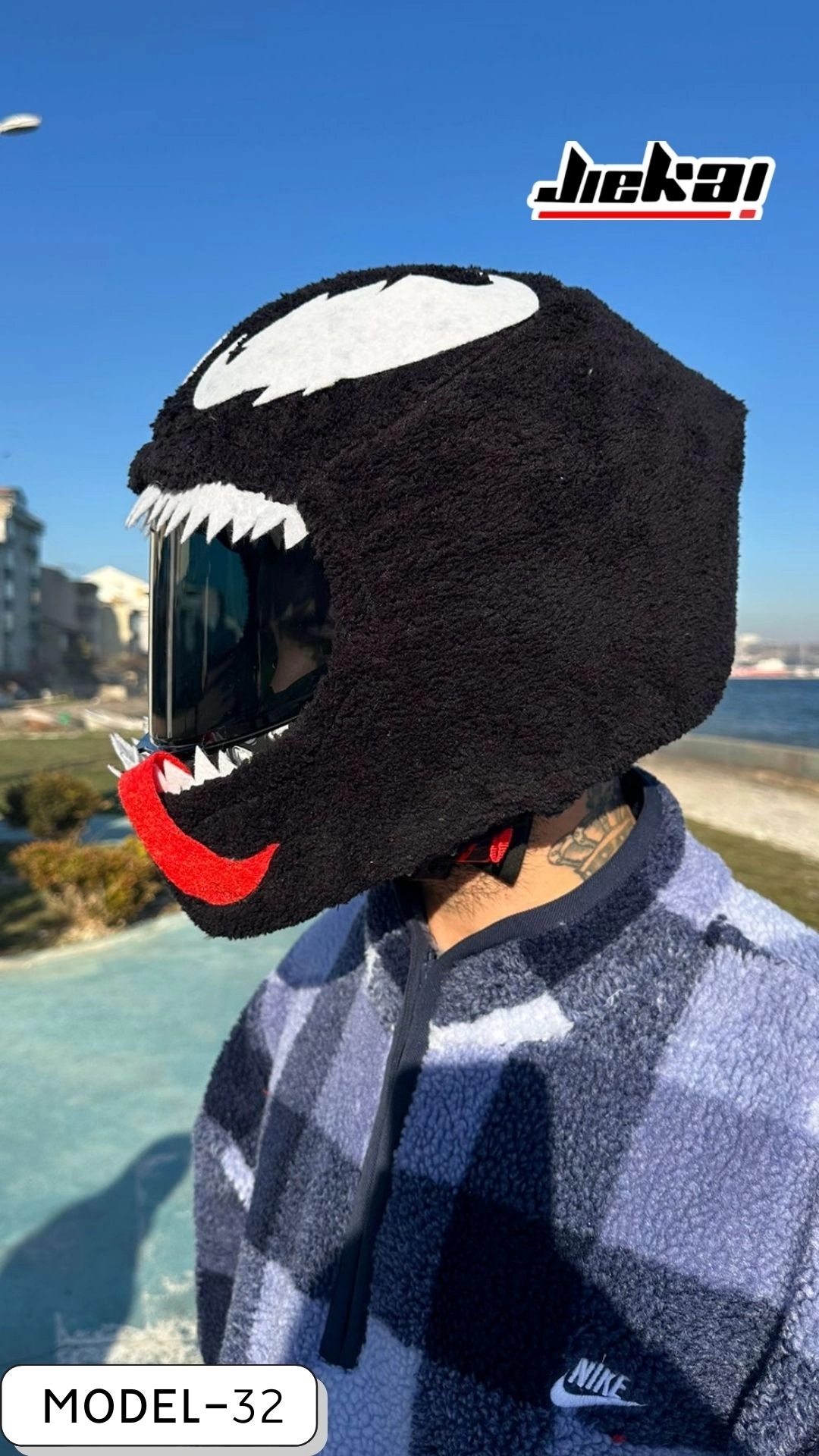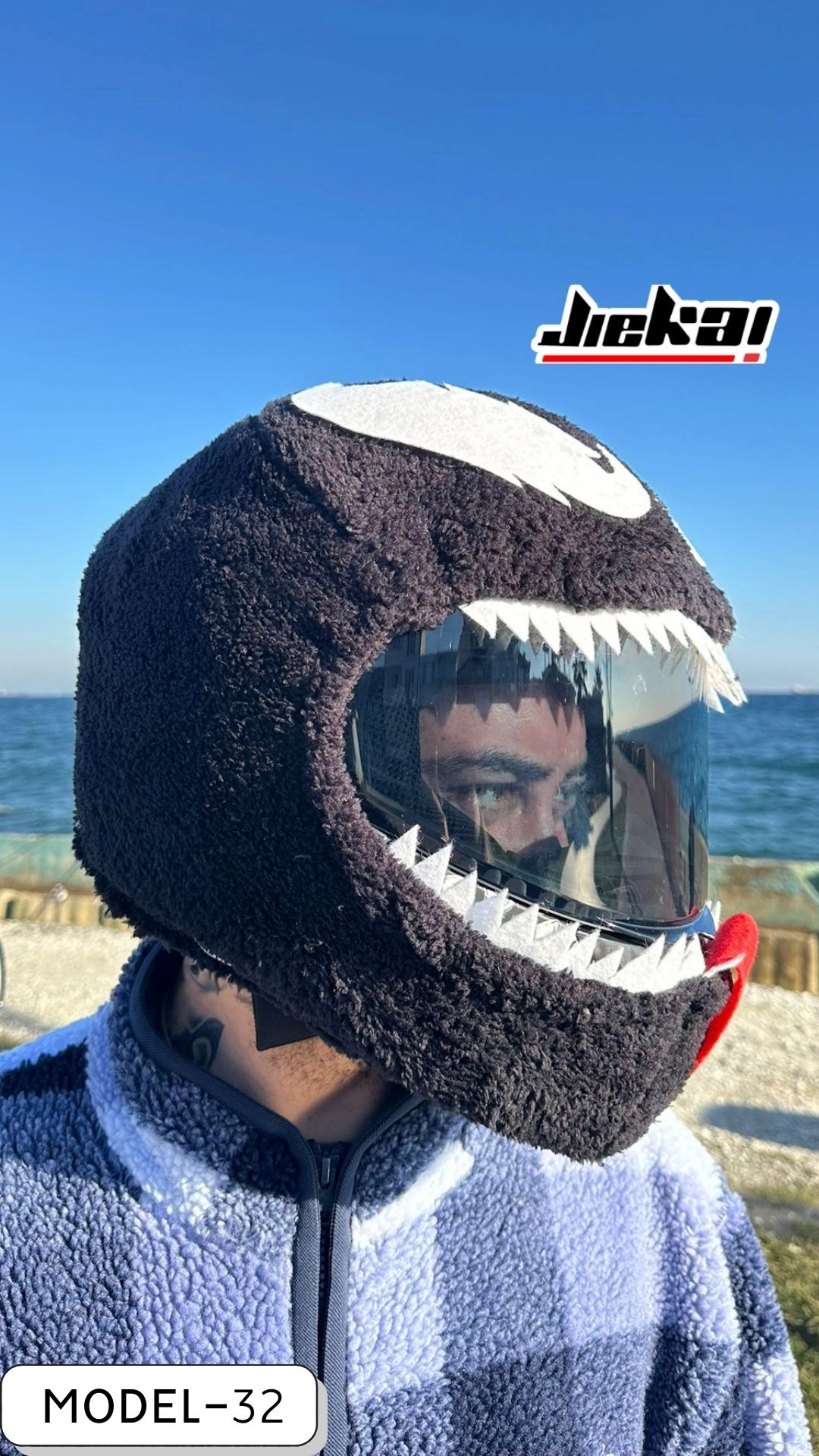 Venom Görünümlü Kask Peluşu, JİEKAİ kalitesiyle üretilmiş olup motosiklet aksesuarlarında tarz, konfor ve dikkat çekiciliği bir arada arayan kullanıcılar için özel bir üründür.