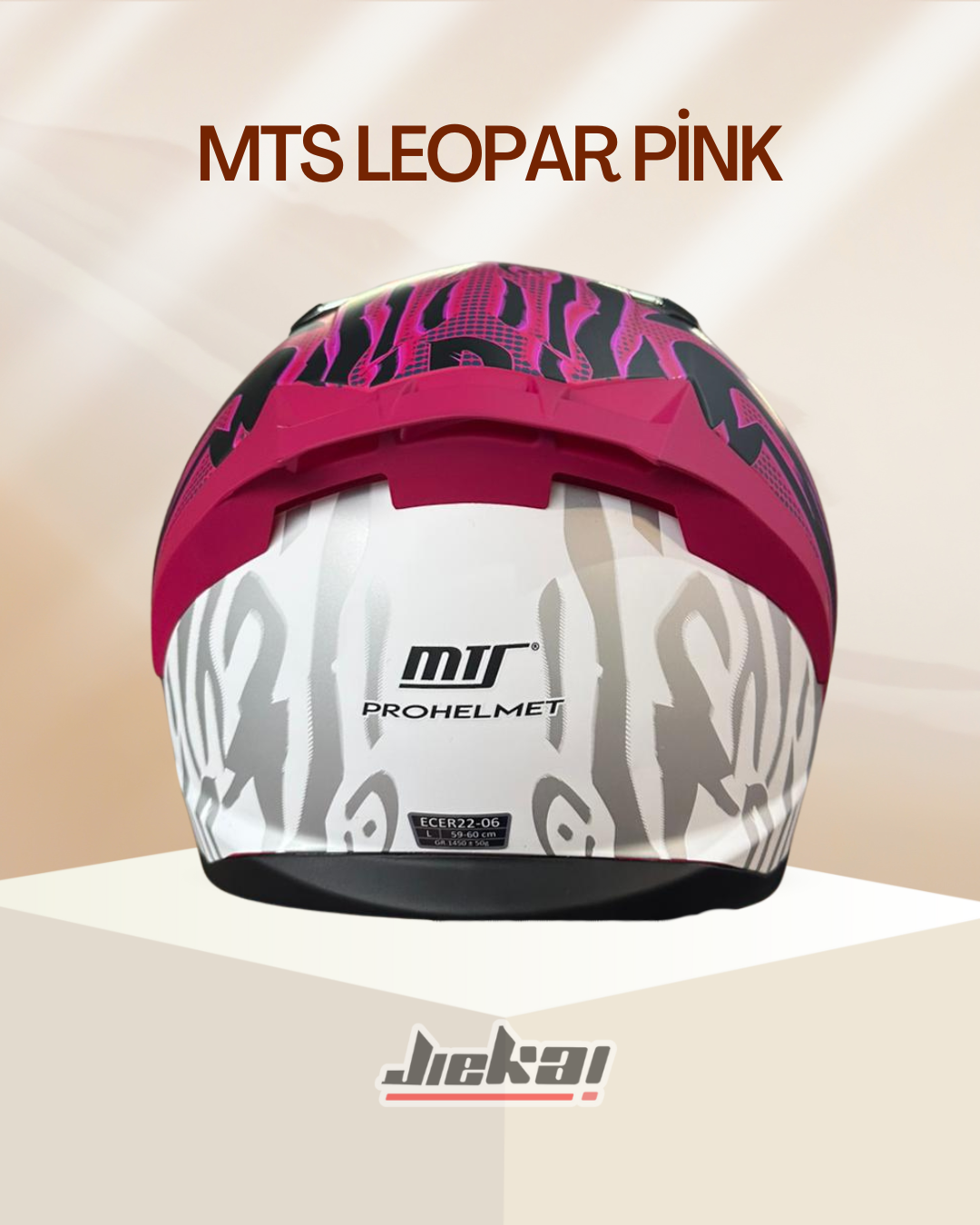 MTS markasının özel tasarımı Leopar Pink kask, güçlü görünümüyle dikkat çekmek isteyen sürücüler için üretildi.